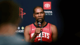 Rockets’ Kevin Durant sees himself signing contract extension in Houston. By William Guillory / The Athletic