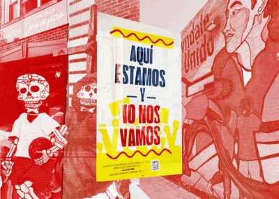 How faith leaders are helping a community under siege. A yellow and white sign warning to call if you see ICE imposed over New Life Community Church in Chicago and murals seen around its Little Village location.